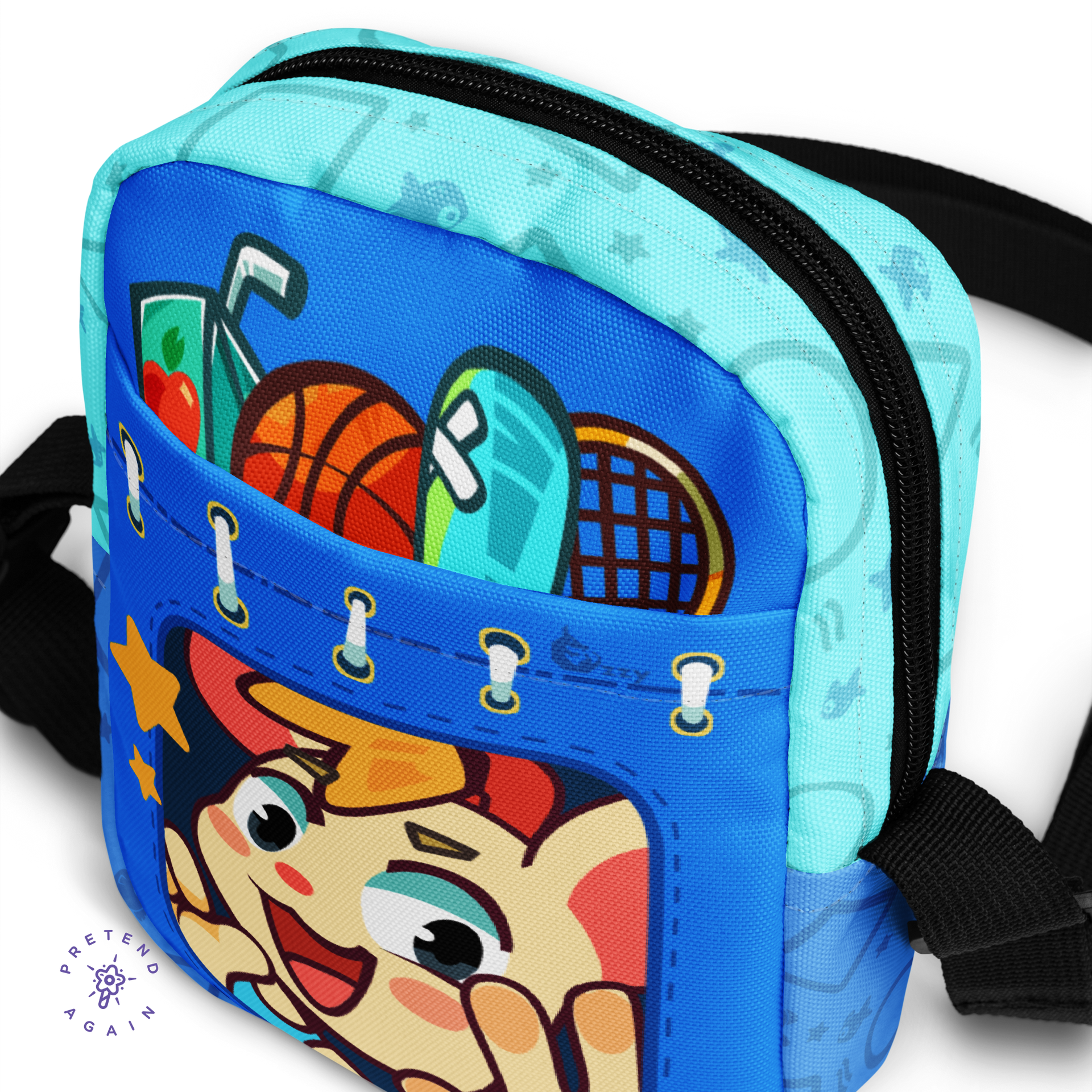 The grown-ups sure like to make you carry stuff when you don't want to. Your toys? You're done with them! That gum you were chewing? No more flavor. Dad's camera bag and lenses? Why can't he carry them? With this bag you can tell your grown-ups THEY need to TryAgain, since your bag is full with YOUR toys! Oh, it's not full? You have a juice box, a basketball, a racket, and a bat in your bag!